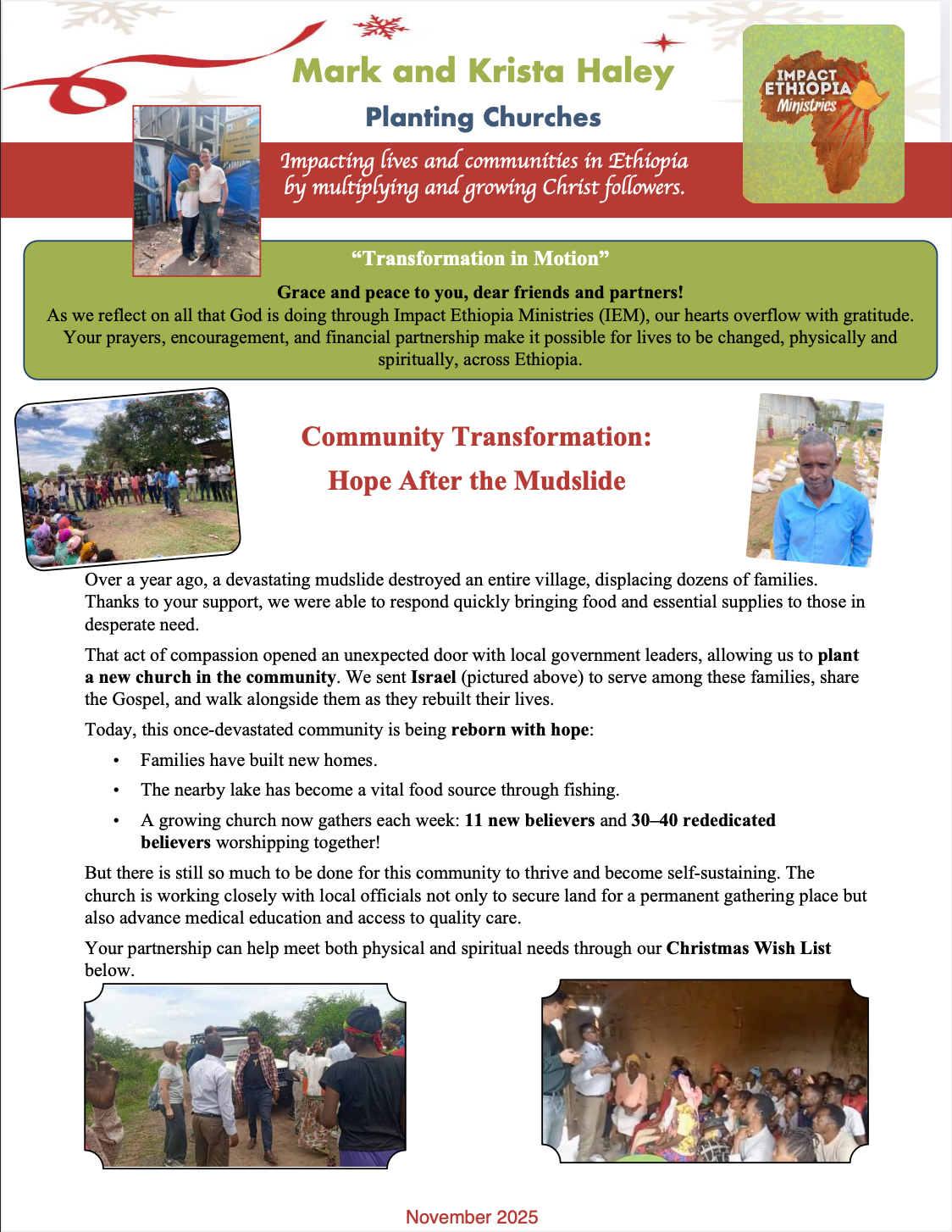 Is a married man with three sons (like the Haleys)! He grew up in the west part of Ethiopia and serves near his home area in the remote village of Tulu Lencha. He continues to share the gospel with people in the community as he leads a small church plant in the village. His church plant continues to grow as he is faithful to the work. Pray for his community to be transformed by his work.